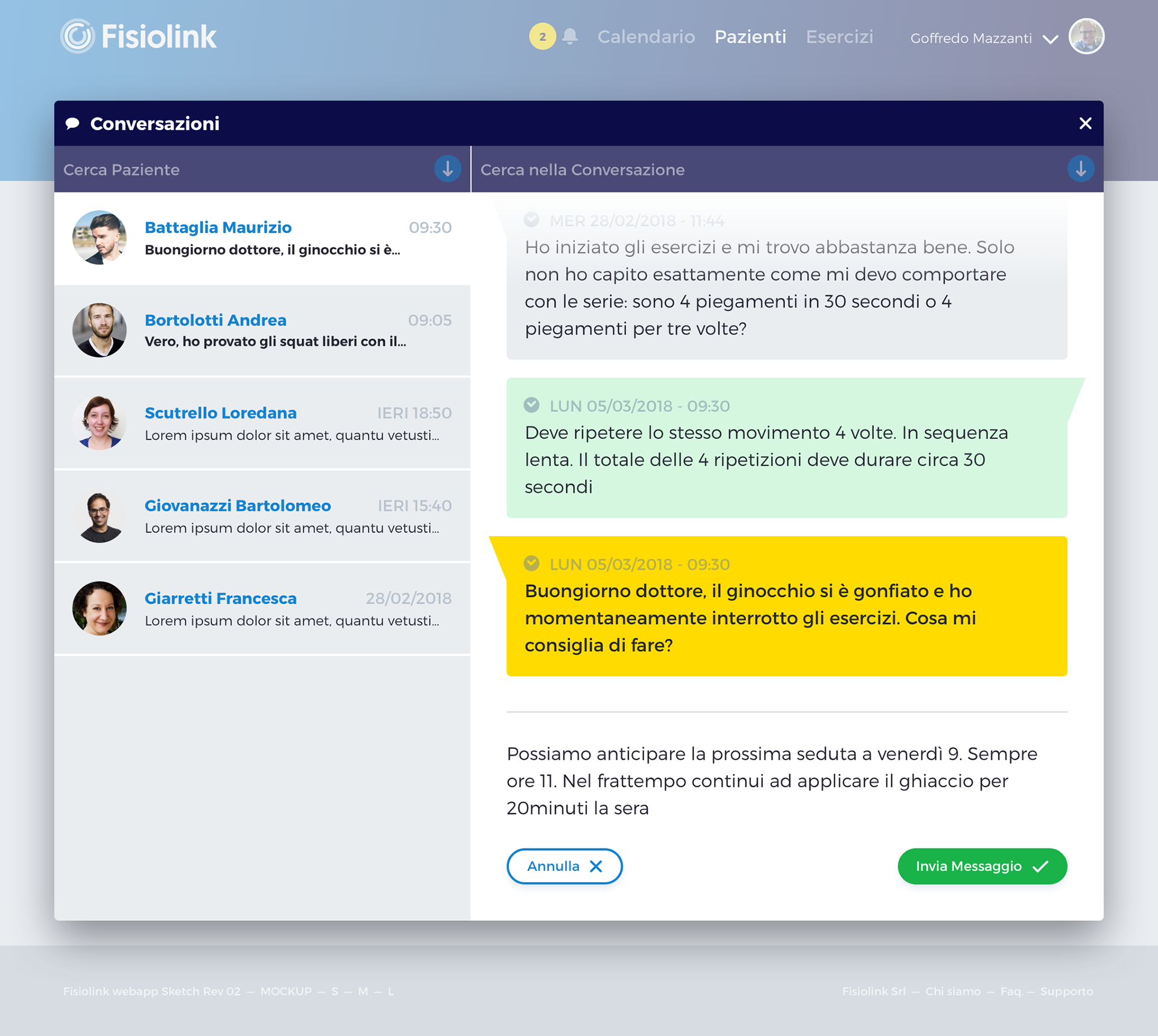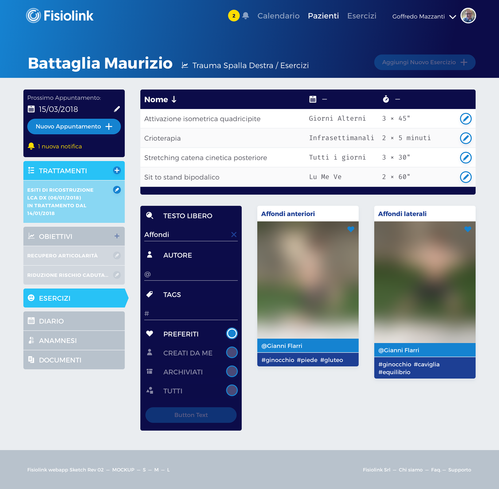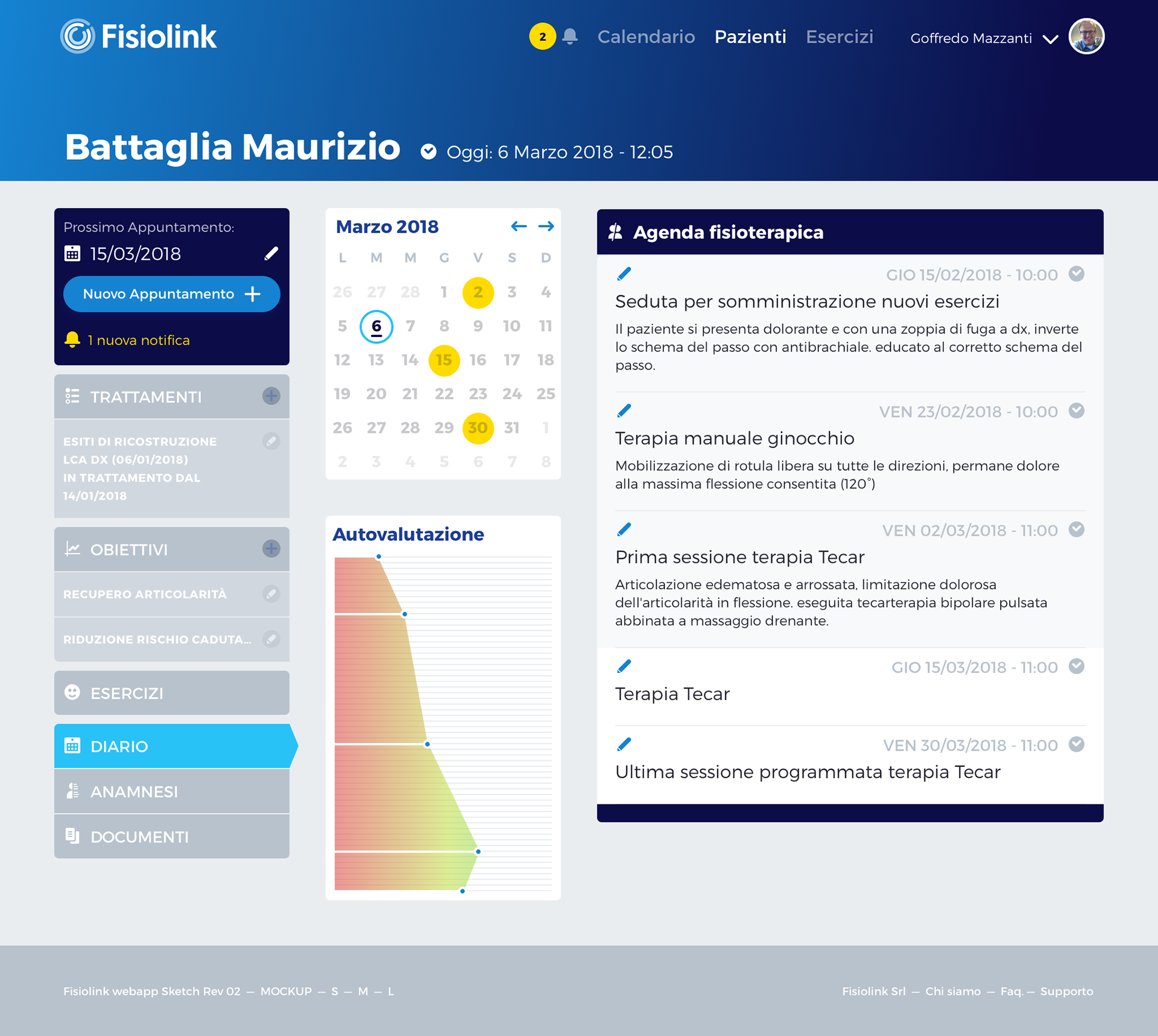 UI Prototype, interaction logic flow exploration, and visual identity for a healthcare platform for physiotherapists.
