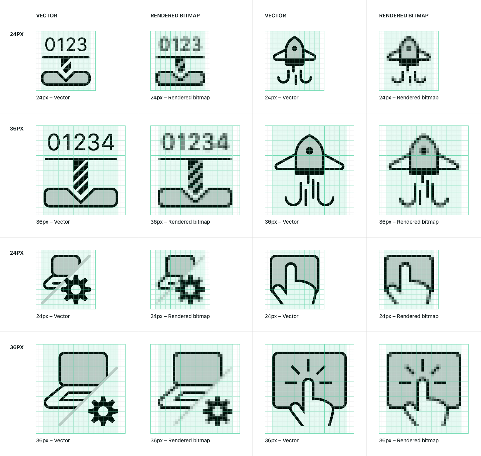 • Pixel perfect design for both SVG and rendered bitmapped PNG export.